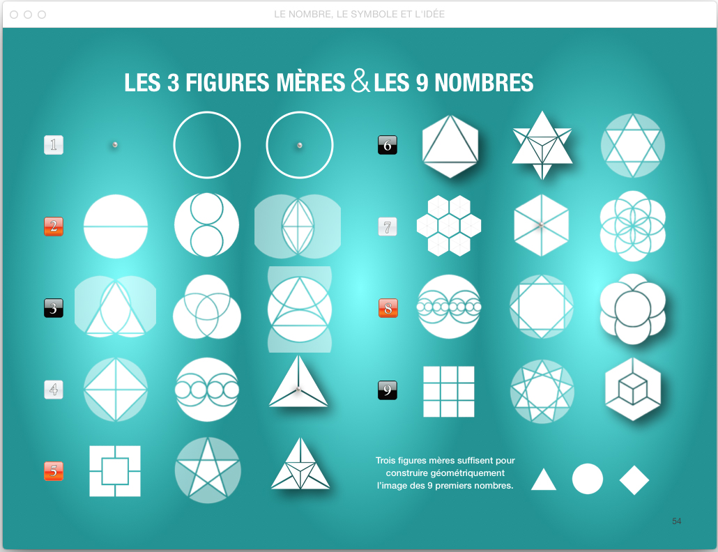 Tous les symboles sont réalisés à l'aide des trois figures mères : le cercle, le triangle et le carré.